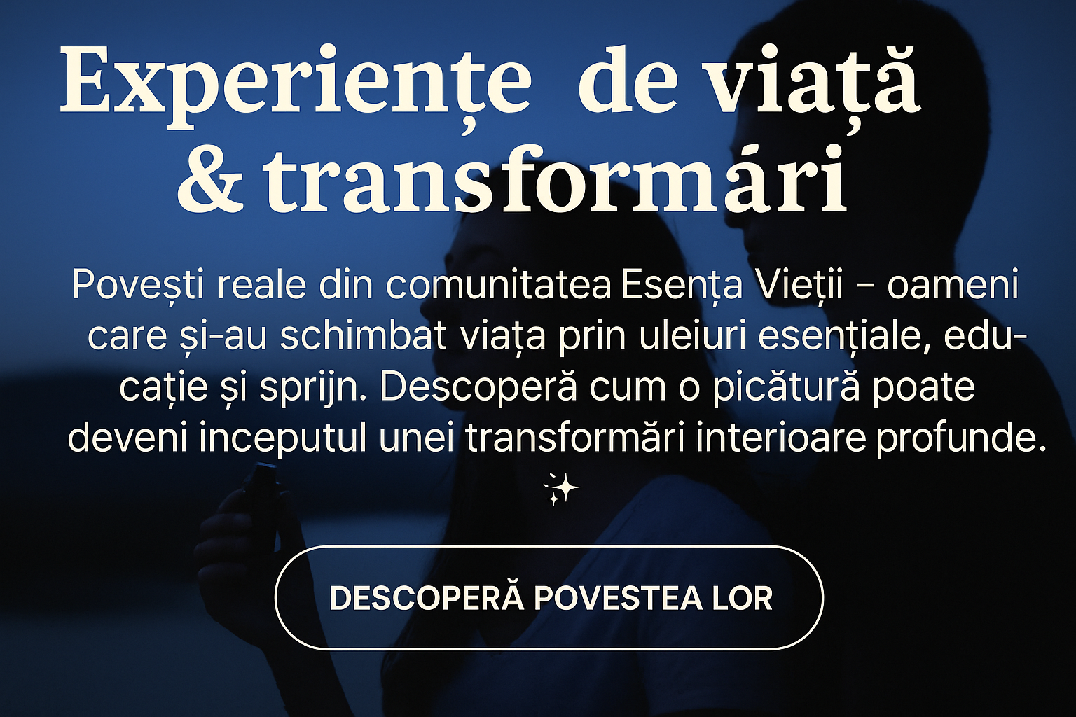 Povești reale din comunitatea Esența Vieții — oameni care și-au schimbat viața prin uleiuri esențiale, educație și sprijin.
